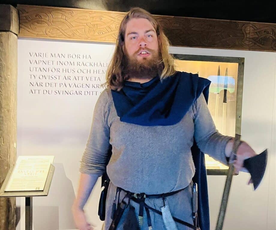 With sword, knife, whetstone, reindeer horn comb and pouch hanging from his belt, a bearded Viking welcomes us to the museum. He explains how Vikings had to be farmers as well as warriors. Reacting opportunistically to circumstances on their explorations. If a settlement was strong, they traded, if it were weak, they raided.