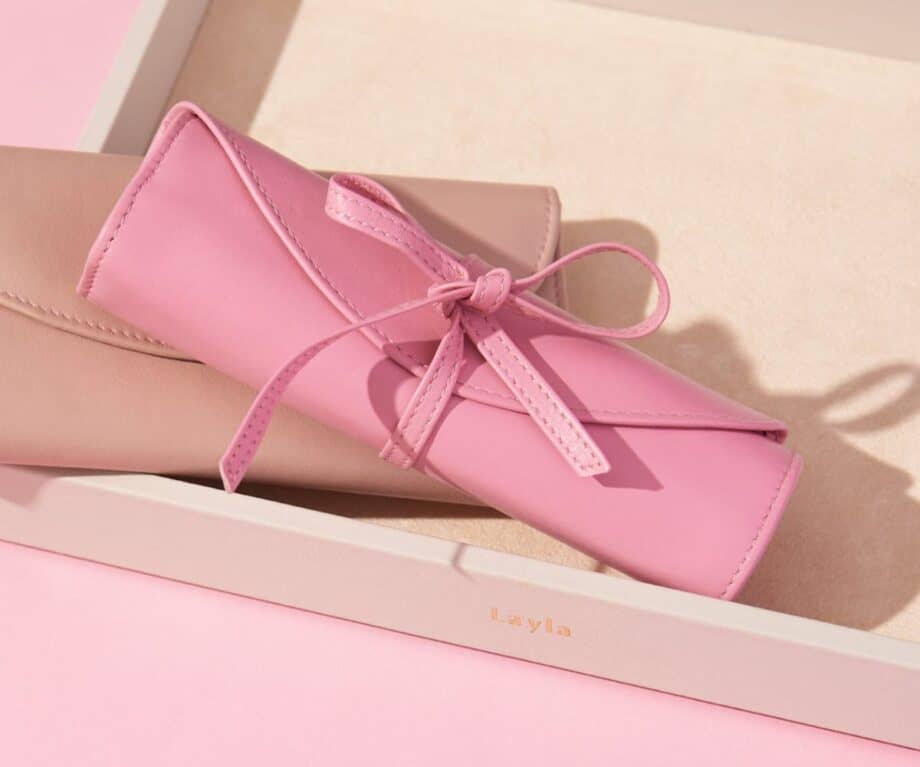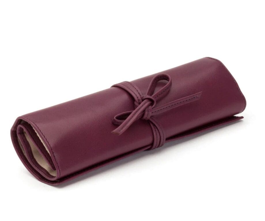 This beautiful soft calf leather jewellery roll from Noble Macmillan is the ideal travel companion. The roll has three silk lined pockets for necklaces and bracelets, a ring mould for 8 rings and an earring band for 6 sets of earrings. Hand made in our workshop, this roll can be personalised with initials, a name or a message to make it even more special. If you’re going away for a weekend or holiday, this is the perfect travel roll to keep your jewellery safe and secure while looking stylish.