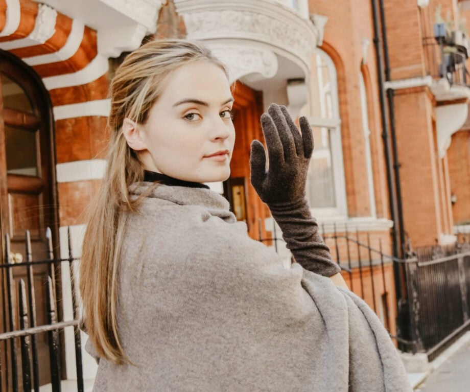 ‘Luxury’ is a concept greatly debased; so often a cover for overpriced ‘tat’, as we would say in England. But consider this. The ‘Elspeth’ glove from Cornelia James is 50 grams of pure cashmere that has been combed from the underdown of a goat grazing in the Gobi Desert, collected and transported over 6,000 miles to the shores of Loch Leven, Scotland before being dyed, spun, knitted and finally delivered to their glove makers in Sussex, England. Luxury? We think so.