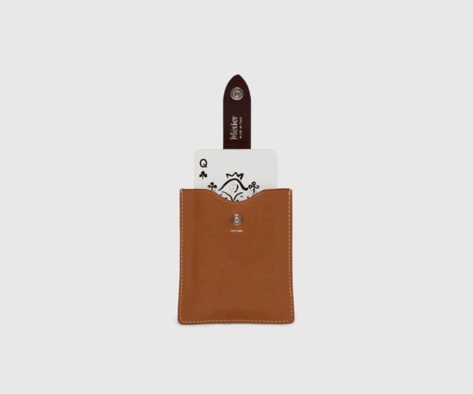 Slim and distinctive, this case from Métier looks as chic on a coffee table as it does inside your bag. It comes with a set of their very own playing cards, designed in-house. The subtly-grained leather case comes with a smart pull-out strap for easy access to its contents. Lined with Métier’s simple, sumptuous Amarone Alcantara, the case can double as a cigarette case or wallet.