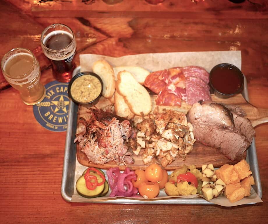 Nothing goes with craft beer like good BBQ, and Six Capital has both cruising at a high level. They won awards for their impressive beers, including Kolsch, Blond with razz-matude, and classic Altbier. When combined with the fried green tomatoes, the taster sampler is the decision path to get your choice down to one. The BBQ is just as award-decorated as everything is made in-house, including sides like pickles, hot peppers, and sauces. Two must-sample dishes include the Brisket Blue, which takes perfect brisket and adds blue cheese to make it the ideal sandwich blend. The Barbequeterie Board is the ultimate smoked sampler, with the main smoked meats, sausage, and sides like homemade peppers, beer-infused mustard, and craft sauces. For vegetarians, there are BBQ jackfruit tacos and sliders with the same elevated taste.