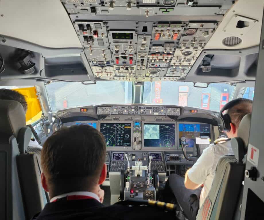 Boarding was smooth and I even managed to piggy-back on a youngster’s request to see the cockpit prior to take-off, to take a quick shot of my own.