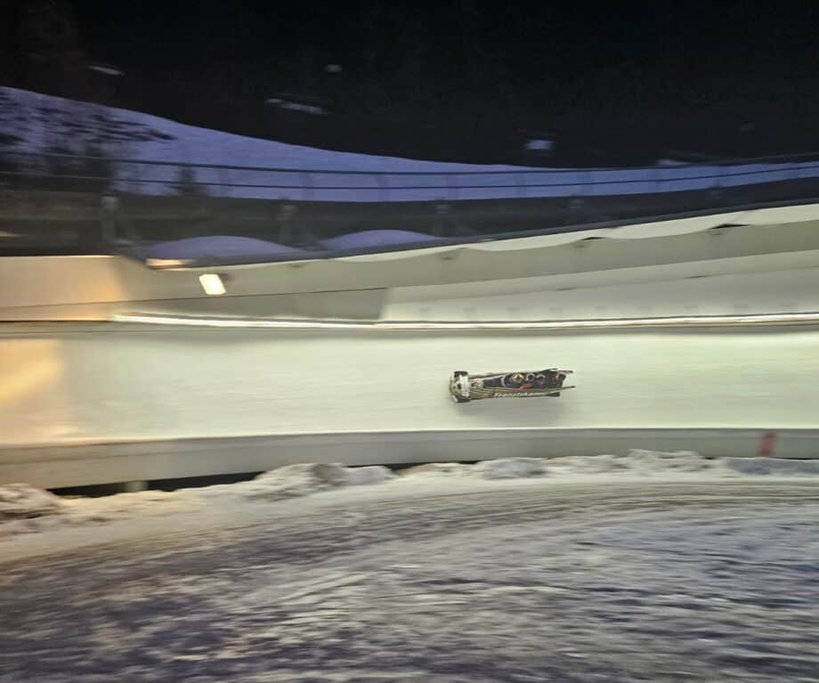 At the finish, an uphill stretch (before a flatter finish) slows the steel-clad bobsleighs to a dignified halt. For us, in our less aerodynamic craft, things played out rather differently. Unable to crest the hill, we found ourselves hurtling backwards down the icy chute — an unexpected encore that sent our hearts racing once more. Unsure whether this was supposed to happen (it was!), we oscillated like a pendulum, rocking back and forth before finally coming to a standstill, with mixed emotions of laughter and adrenaline.