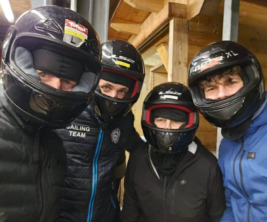 Our experience began at building K14, conveniently located near the bobsleigh car park, where there’s also a café. Here we checked in and were provided with lightweight balaclavas to wear under our helmets. A little nervous laughter filled the air as we saw the first bobsleigh come hurtling down the track at break-neck speed. We were also able to watch each descent on a large video screen.