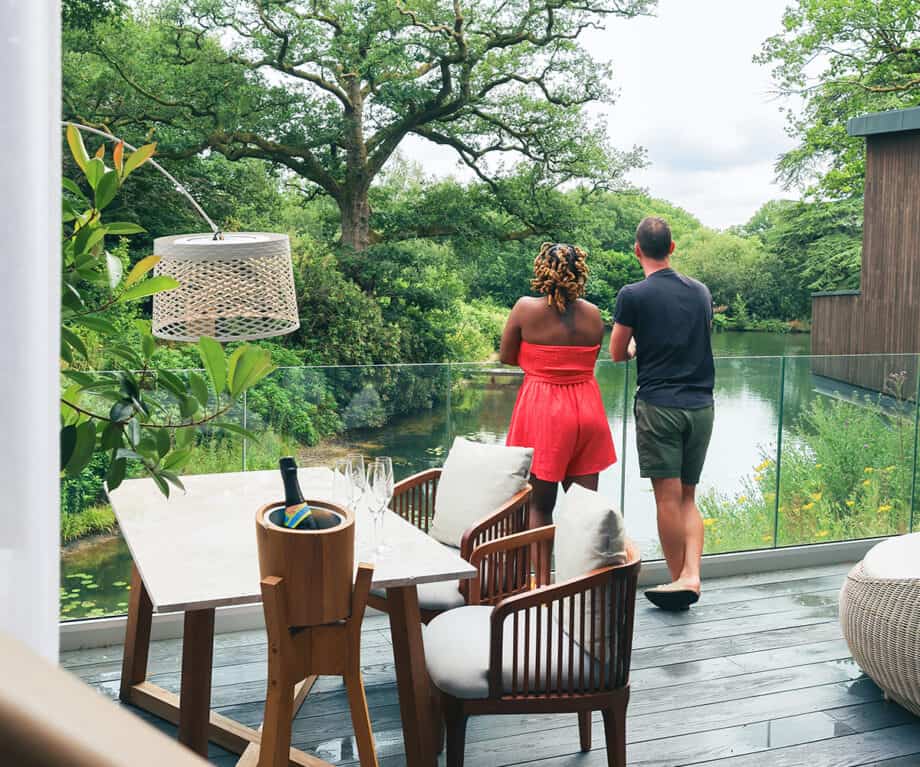 Inside is akin to a Scandinavian-style sanctuary—neutral tones, tactile materials, clever kitchenettes, and digital fireplaces create a relaxed yet sophisticated home-from-home. The welcome hampers, filled with local Sussex produce, seasonal surprise cocktails, and a chilled bottle of Ridgeview sparkling wine, were a lovely touch. From our deck, we were entertained by birdsong, water lilies drifting past, and even joined a guided wild swim.
