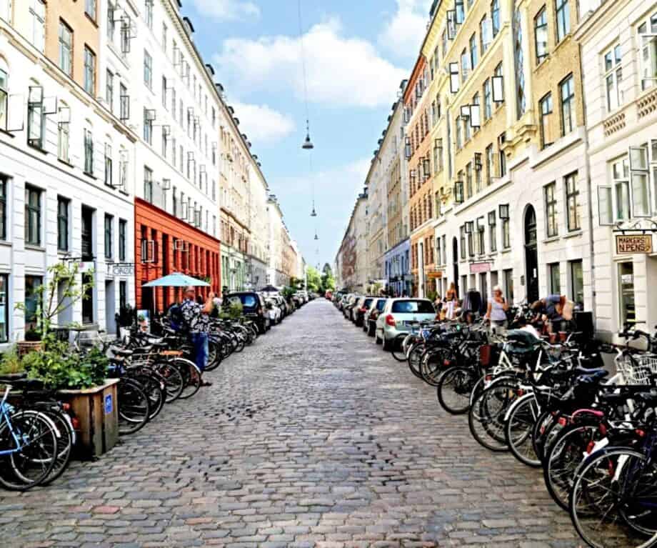 Snaregade and Magstræde, with their original cobblestones, are two of the oldest streets in Copenhagen, dating back to the 18th century. Beautiful streets with a higgledy-piggledy array of different-sized houses with brightly painted plasterwork – loads of character and great streets to photograph.