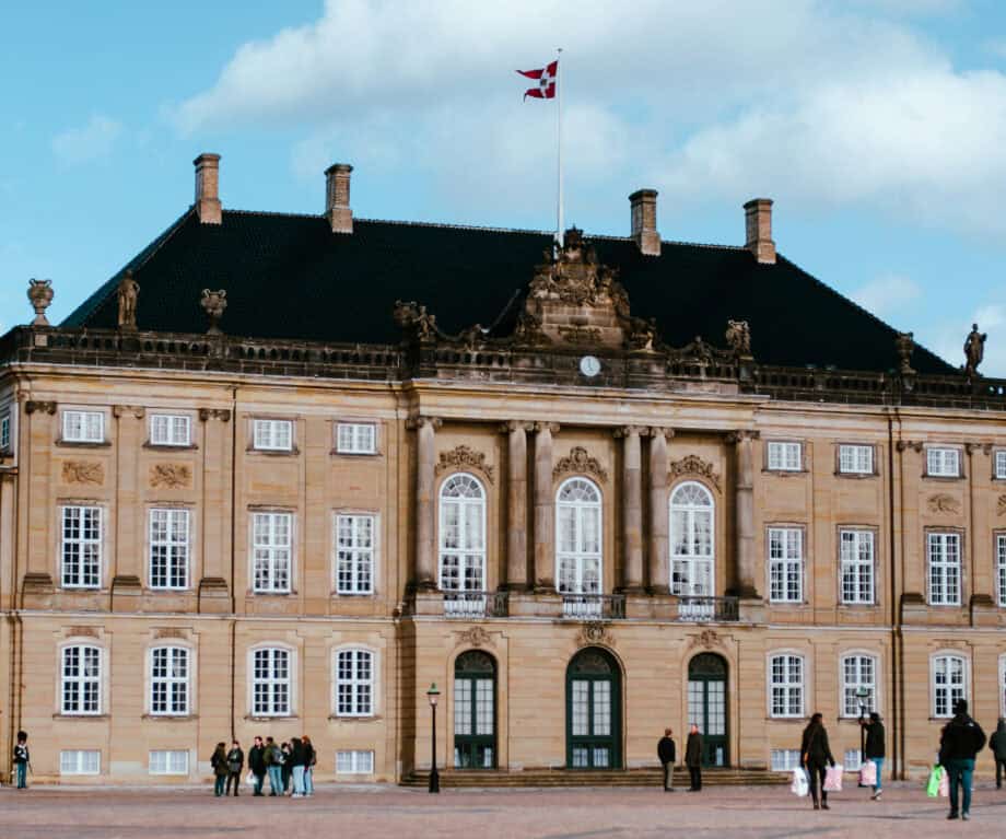 Amalienborg Palace has been home to the Danish royal family for over 200 years and consists of four separate rococo palaces around a large square.