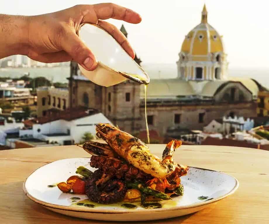 A coastal Colombian gem, Cartagena is proud of its kaleidoscopic culinary scene. Its exciting and wildly diverse gastronomic options span the gamut from chic upscale dining that artfully fuses local flavors with international trends, to simple street food stalls that reflect a rich cultural heritage and Caribbean charm.