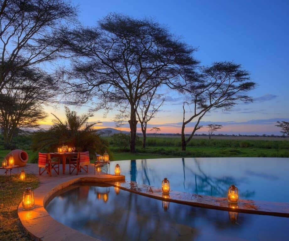 The infinity pool at the award-winning Amani Spa is an absolute treat after a long day exploring the wilderness with sun loungers, a hot tub, attentive butler service, and massage tent for wellness treatments. But its magic is truly revealed at dusk as the sky turns shades of pink and orange and the stars start twinkling through. Your Maasai butler lights a roaring campfire, the cocktails and pre-dinner snacks come out – and the pool lights up with unique fibre optics, mirroring the constellation of Orion’s Belt. Pure magic!