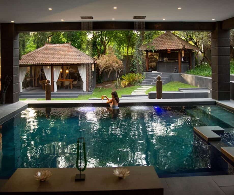 The pool features a rim flow jacuzzi, soothing rainfall showers, and is surrounded by relaxation pods for meditation or unwinding in an oasis of greenery. The Balinese-style spa is celebrated for its tranquil ambiance and extensive hydrotherapy circuit, which helps guests relax and rejuvenate as if in a serene Asian forest, all just moments from the bustling city. There is also a second outdoor pool to cool off in in the beautiful gardens of the main hotel.