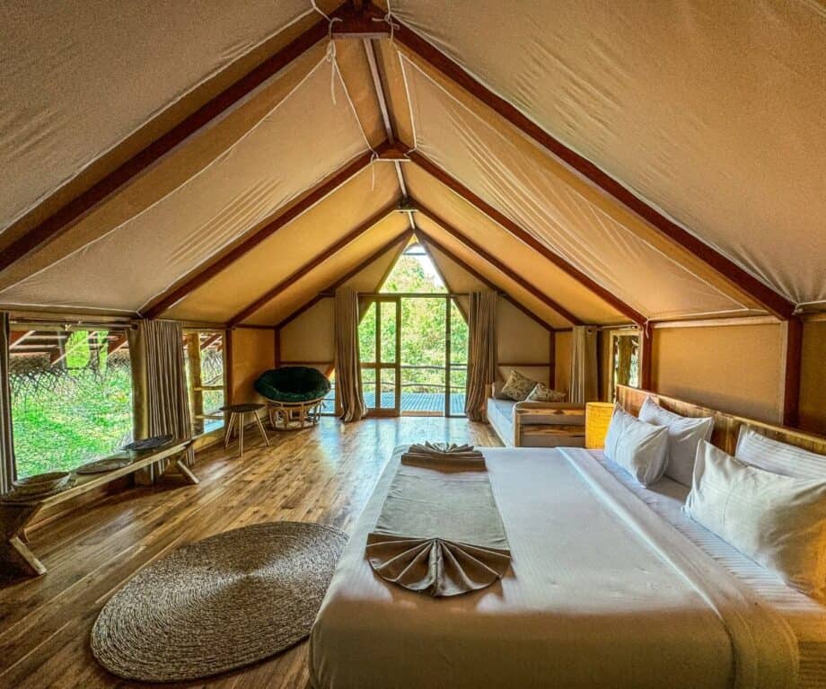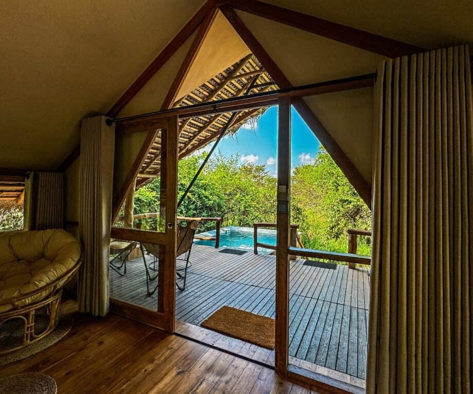 Adjacent to Wilpattu, Thamaravila Wilpattu is perfectly positioned for visits to the park. Thamaravila is glamping in style – 5 luxury tented chalets, built on stilts with thatched roofs, wooden decks and plunge pools.
