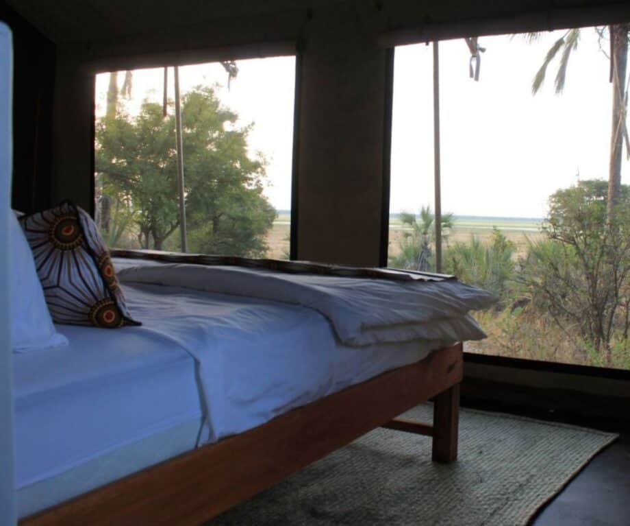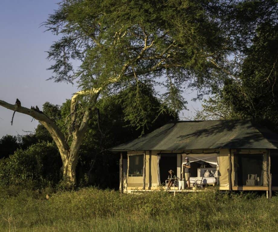 Chimwala Bush Camp is a self-catering camp featuring four ensuite canvas tented suites with stone walls and a stone family cottage that is separate from the main camp. The elevated thatched central area – lounge, dining area, bar and swimming pool – overlooks the Shire River and floodplain below. The camp is tucked up against Chinguni Hill in the shade of mopane and miombo woodland. Chimwala has a perimeter fence. The camp is deep within the park near the most productive game viewing areas. Chimwala Bush Camp will be converted into a fully catered camp in 2024, while the family cottage will remain self-catering. The camp is operated by African Parks and 100% of tourism revenue earned by African Parks goes to conservation and local communities