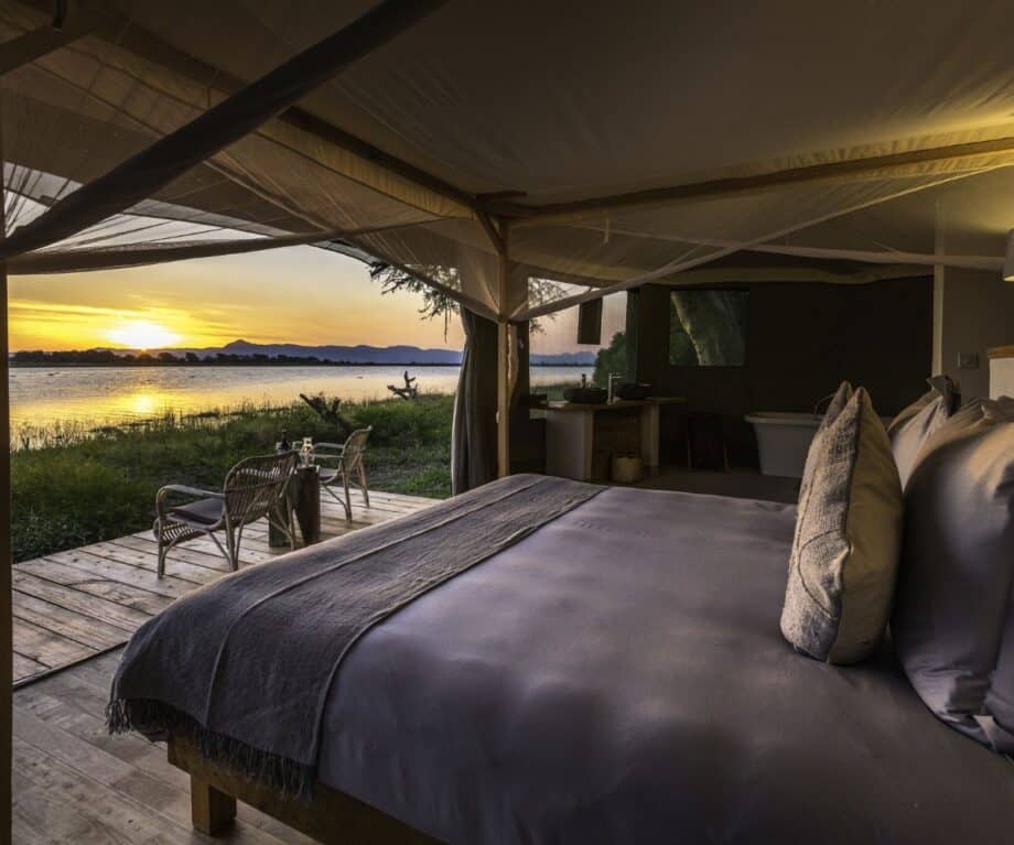 Hidden amongst the iconic fever trees of the magnificent Shire, Mvuu Lodge overlooks Namagogodo lagoon, as it flows from the park interior out towards the river. 5 comfy tented chalets with private viewing decks, 3 spectacular secluded suites with plunge pools and outdoor showers in every room. This is the perfect spot for early morning bush walks, slow sailing on the Shire, thrilling game drives or meaningful community engagements.