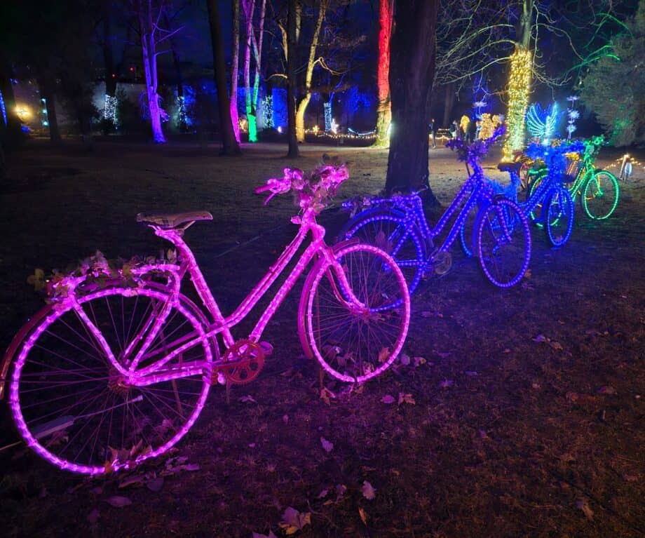 It’s a spectacle that will delight young and old alike. The over one-kilometre circular route is adorned with illuminated bicycles, trains, trees and much, much more.