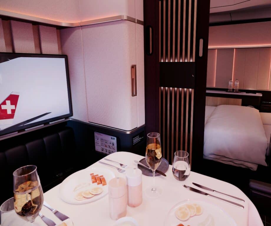 The new SWISS First Grand Suite allows two adjoining First Class suites including the aisle to be combined into a single extensive and exclusively secluded loft to provide additional room for couples traveling together, families or business travelers. The combined private area, which also features over 1.8-meter-high walls, can be used for any of various functions. And be it as a workplace, a restaurant or a bedroom, this extensive space enables its occupants to spend their flight free and undisturbed within their own exclusive zone. The new SWISS First Grand Suite offers maximum privacy, space and individuality. Plus, of course, all the usual delights of SWISS’s outstanding First Class service, tailored even more precisely to the guests’ individual rhythm on board.