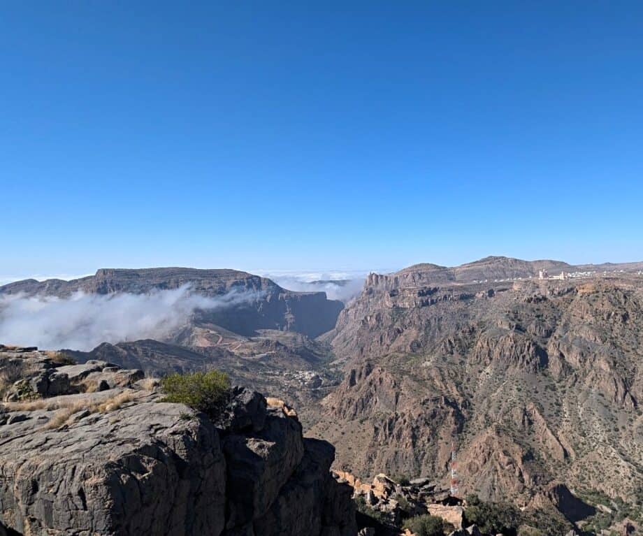 The road wound through the outskirts of Muscat, gradually giving way to the rugged vastness of the Omani desert. As we get closer to the mountains, the landscape becomes even more dramatic, with jagged peaks rising against the slowly brightening sky. The air grows cooler as we climb. We pass small villages and traditional stone houses, clinging to the hillsides.