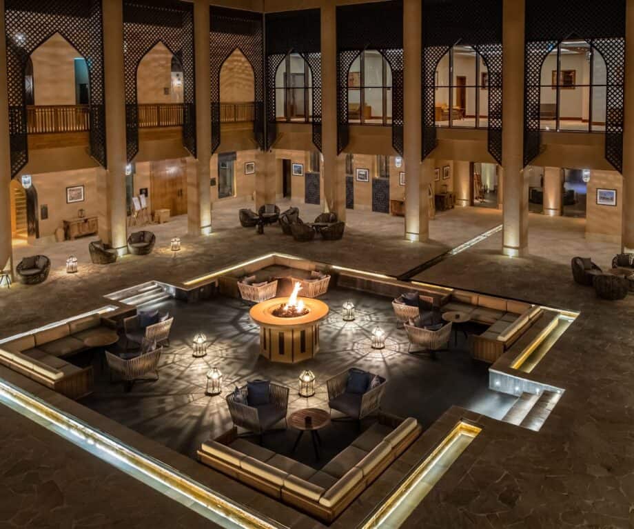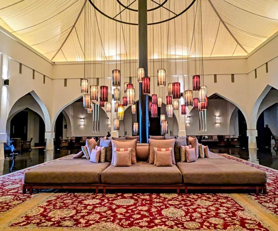 The resort’s fortress-like stone walls, huge arched windows, and intricately carved woodwork reflect Oman’s cultural heritage. Indoors traditional elements like tadelakt plasterwork and zellij tiles are incorporated and in the gardens, pathways lead to a traditional hammam, a luxurious spa, and secluded spots for stargazing. It took four years to build the resort – I think it was time well spent!