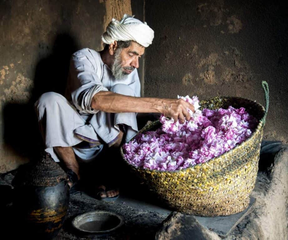 Perhaps the most prized crop though is the Damask rose, known locally as ‘wardh’, which is harvested in March and April and distilled to make world-famous Omani rosewater. Blooming in spring, the roses fill the air with their delicate, sweet scent. Farmers rise early to handpick the delicate rose petals, while their fragrance is at its strongest. The petals are then distilled, using traditional clay ovens or copper stills. It takes three hours to turn 1.5kg of these heady pink blooms into raw rosewater. Each batch will still take a further three to four months of cooling, filtration and storage before it becomes the smokiest and darkest rosewater, and can command a price of around 9 Omani Rials (£20) per 750ml bottle. It’s a time-honoured craft, passed down through generations.