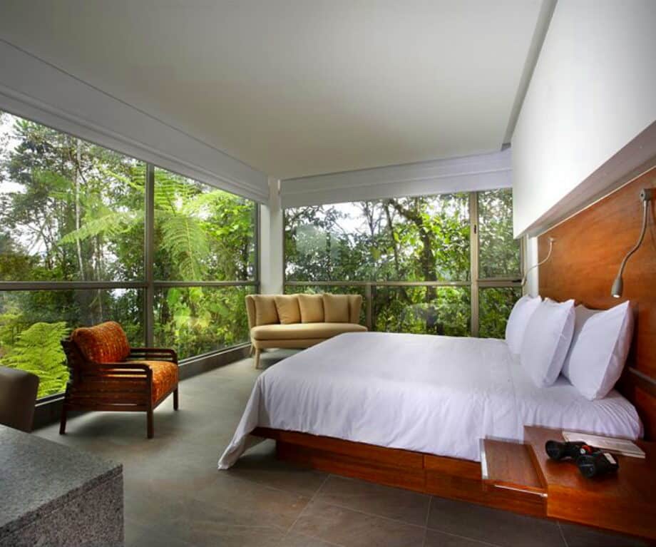 Amongst such primeval surroundings, Mashpi Lodge presents a very noteworthy instance of modern architecture. Seated on stilts rising above the forest floor, the framed-glass structure blurs the visitor-jungle distinction. Inside, the décor is understated and soothing — smooth wood, soft light and soft beds with vistas of moving leaves.