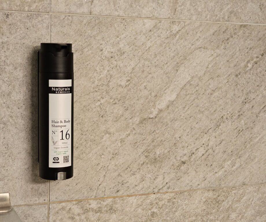 The rainfall shower is particularly invigorating – one of the most powerful I’ve encountered in our many hotel stays around the world. Hair and body shampoo from Natural Remedies, a premium body care line developed by ADA Cosmetics in neighbouring Germany, is conveniently wall-mounted within the shower.
