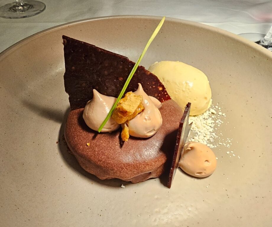 There’s a continuously changing selection of seasonal desserts. If available, you won’t go far wrong with the ‘mandel and schoko’ (almond and chocolate), served with a honey ice cream.