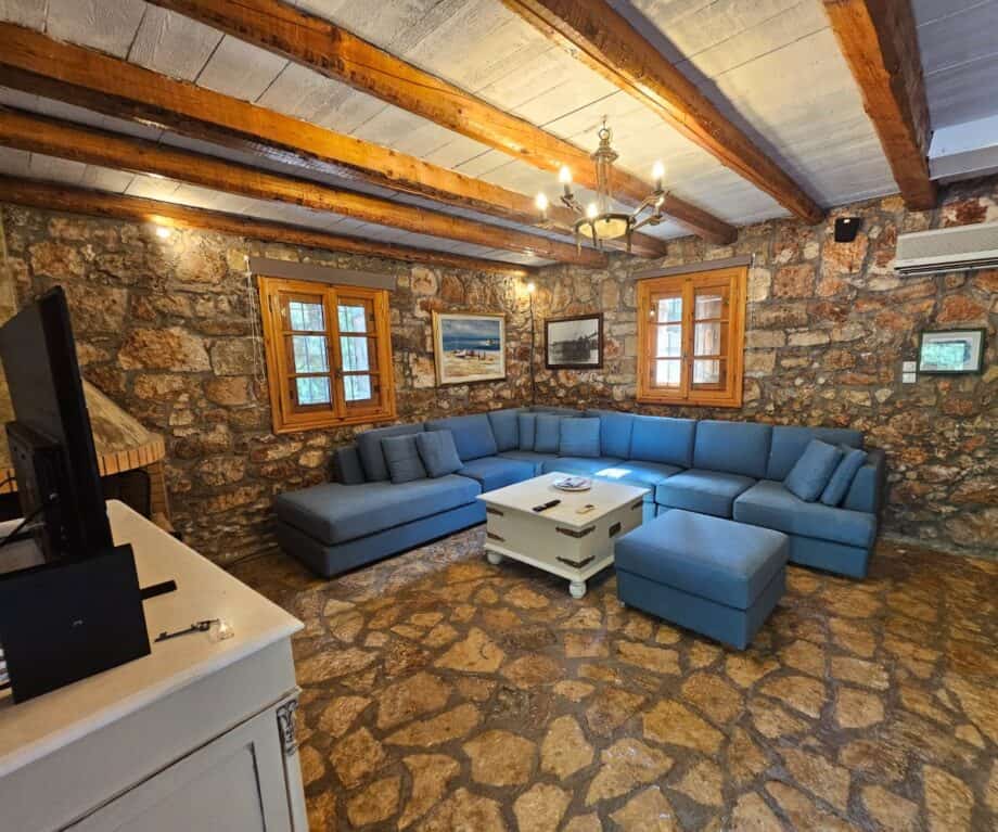 Coolness is the villa’s first quiet gift. Kefalonian summers are hot-blooded affairs, but step inside and you’re embraced by still, cool air—thanks to thick stone walls (some nearly two feet deep) and quiet, efficient air conditioning.