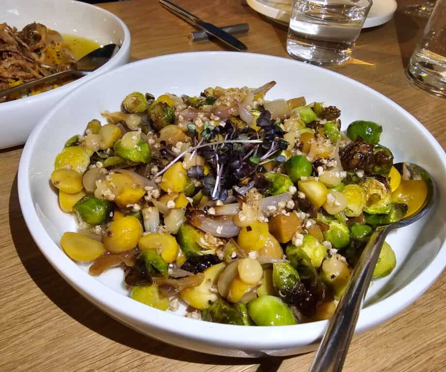 For our appetiser, we had a roasted Brussels sprouts salad with chestnuts, shallots, quince jelly and maple vinaigrette. Who knew vegetarian food – and Brussels sprouts in particular – could taste this good?!