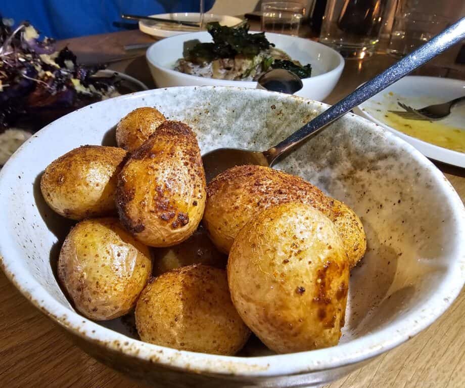 According to the menu, we were due a side dish of creamy parsnip purée with a caper-lemon-garlic oil, but they had run out so it was substituted with some roasted potatoes with kimchi seasoning. I could very easily turn veggie if vegetarian food this good was easy to come by!