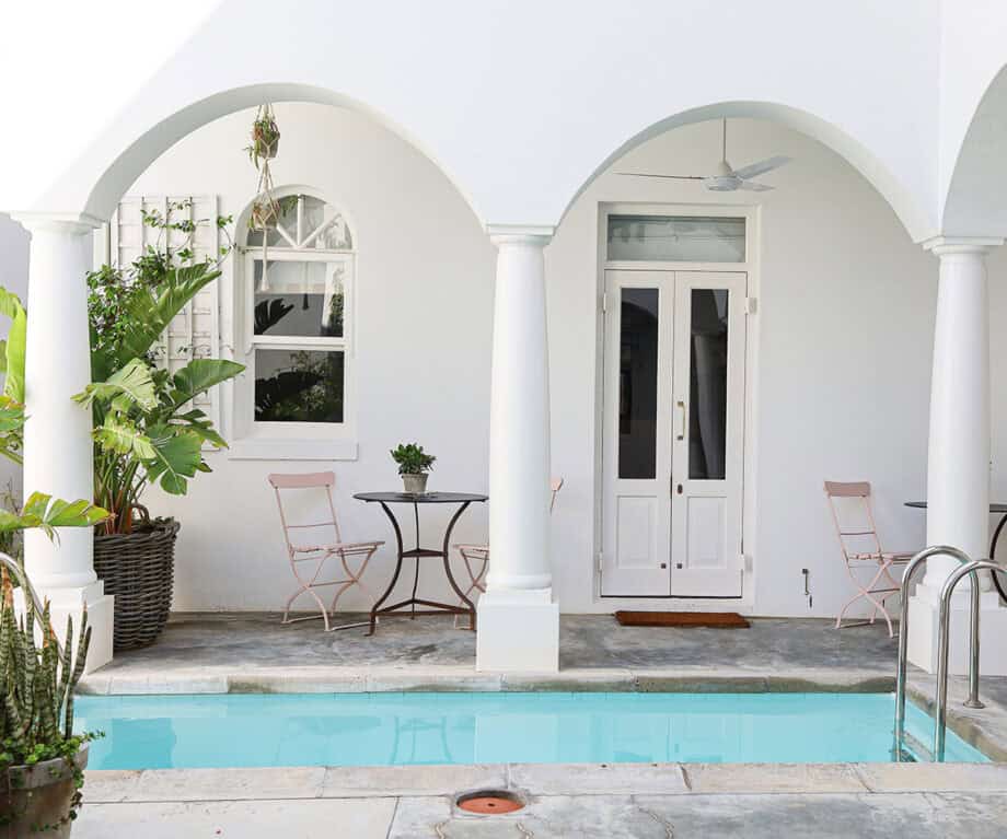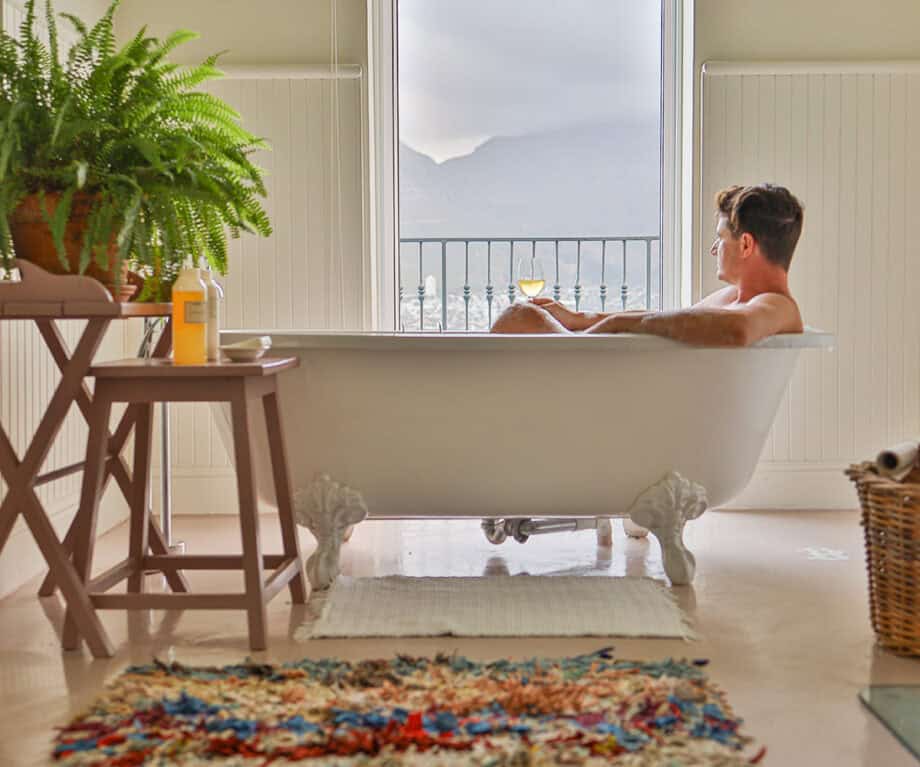The property’s distinct ‘village’ feel evokes thoughts of a wine farm rather than a city setting. Upon stepping off the veranda, a stone path guides you through the whitewashed buildings, all adorned with lush landscaping. You’ll share the space with Cape Robins, dragonflies, and the hotel’s resident cats, all relishing the sanctuary of the garden. There’s also a courtyard pool for a refreshing dip.