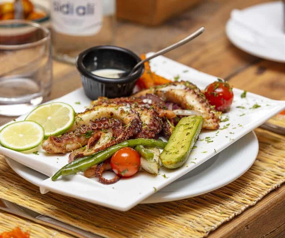 Less than half an hour from Essaouira’s fishing harbour it’s no surprise that a starter of prawns and avocado salad, fish of the day, grilled squid and octopus tagine are the stars of both lunch and dinner menus.