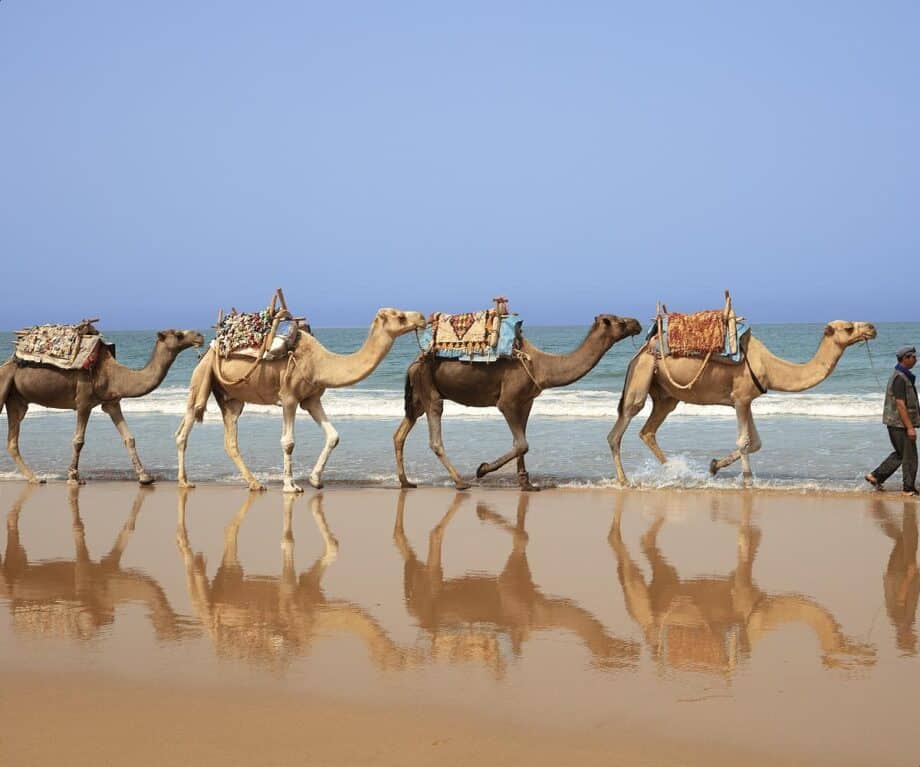 Sidi Kaouki is where Bondi Beach meets Bing Crosby and Bob Hope’s Road to Morocco – but with more camels, dogs, donkeys, goats and horses than surfers.