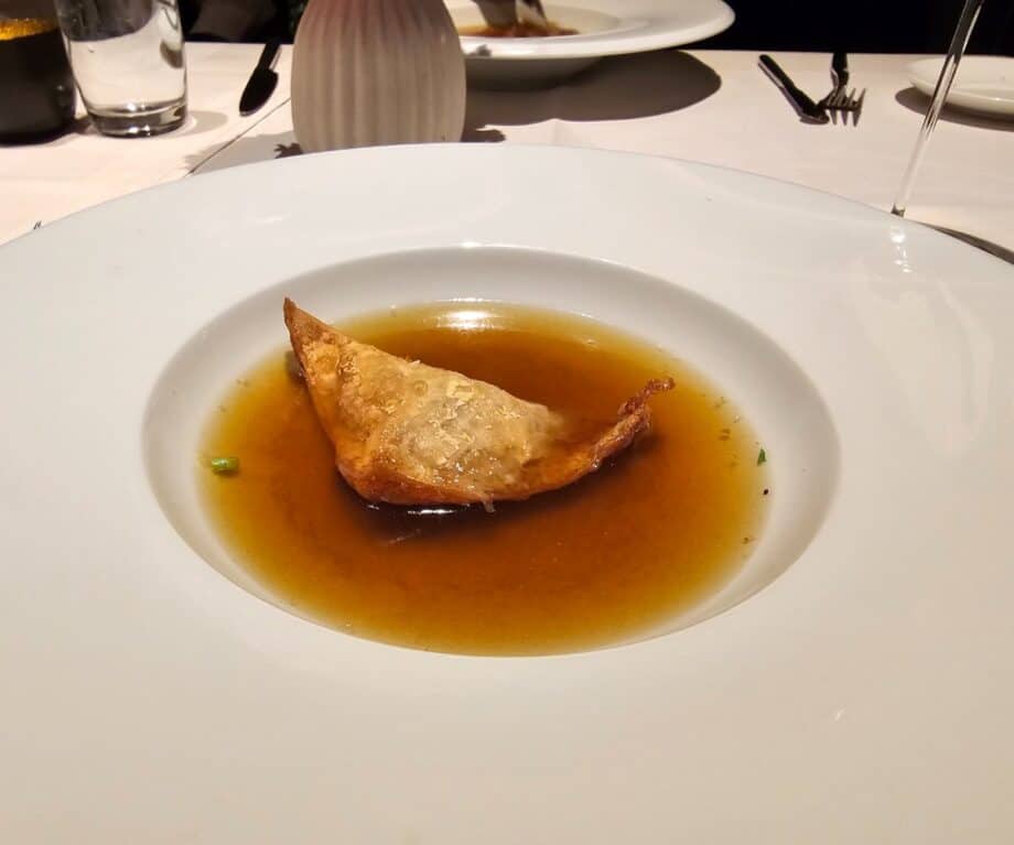 Consommé of simmental ox with stuffed wantan