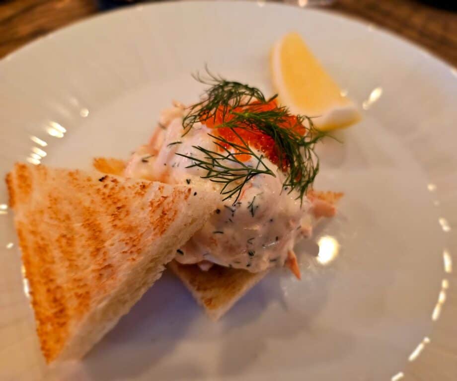 Among our starters, we tried the Skagen toast – a Swedish classic that is a mix of shrimps, mayonnaise and dill, served on toast, garnished with trout roe and accompanied by a wedge of lemon. It’s a popular appetiser and, prepared like this with quality ingredients, it’s easy to see why.