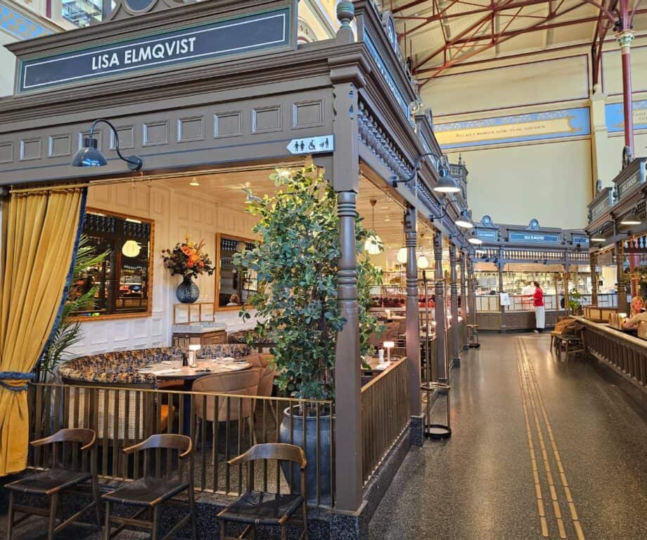 The moment you enter the food hall, the aromas capture your senses. Restaurant seating for Lisa Elmqvist is interspersed by walkways used by shoppers and diners alike, as well as food stalls that set the scene for a very relaxed ambiance.