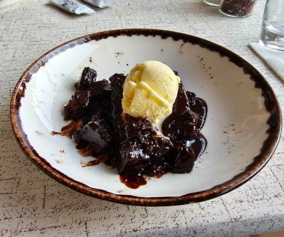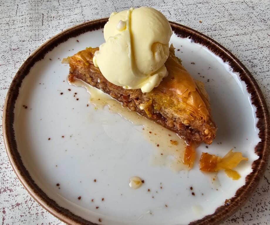 For dessert, we tried a trio of Greek classics: the baklava with ice cream, sticky and indulgent, and laced with spice and syrup; the molten and unapologetically rich chocolate lava cake; and the fragrant and sun-kissed orange pie, the syrup cutting through the citrus with perfect balance.