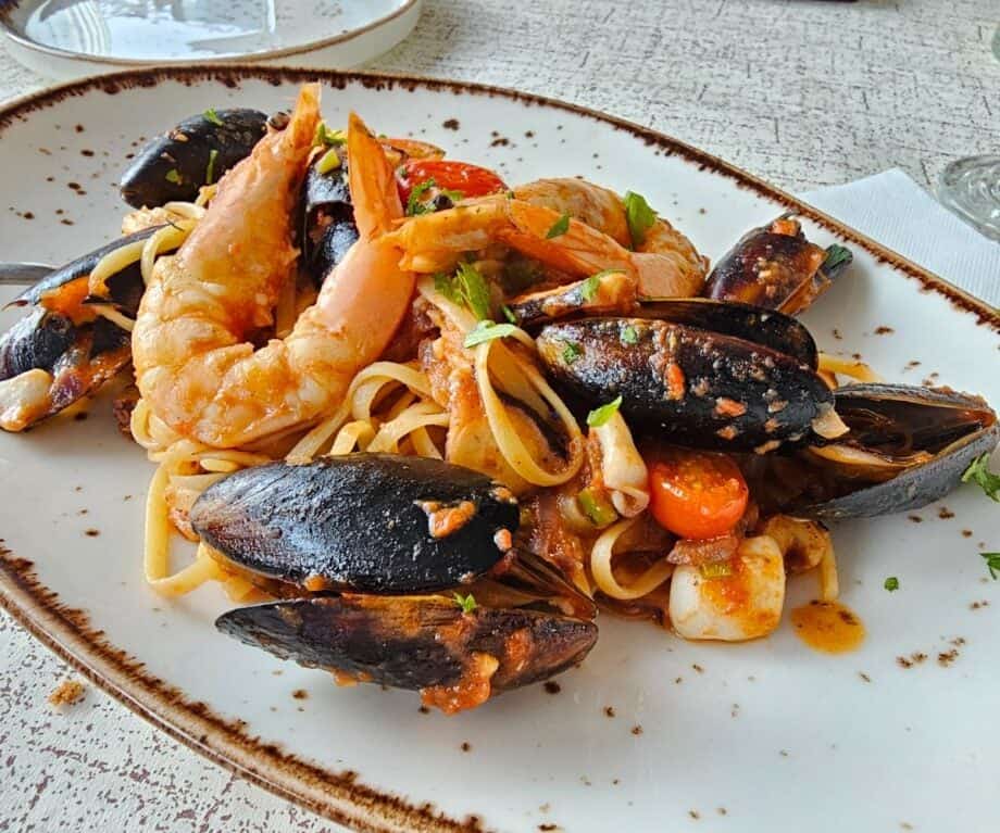 And the linguine marinara? A tangle of perfectly al dente ribbons with a fresh tomato sauce that truly captured the taste of vine-ripened tomatoes, and that you’d be hard-pushed to replicate back home.
