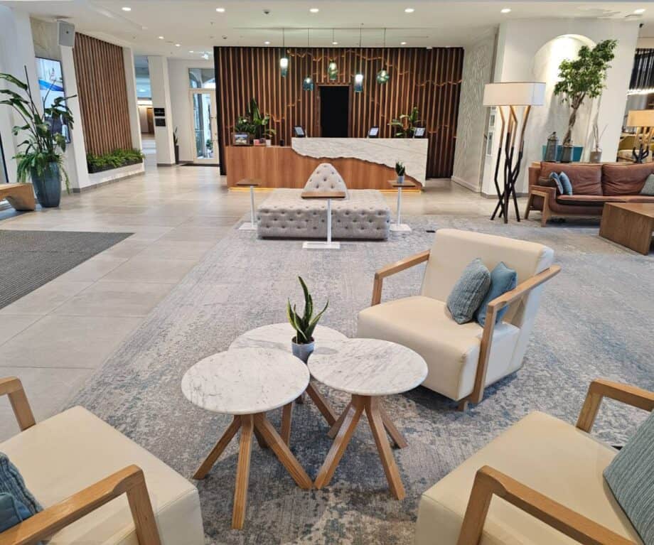 Rade met me with a warm, calm welcome and personally accompanied me to Room 3010, passing Milena Živković’s sea-themed artwork that adorns the corridors. It was only when I explored the hotel more later that I realised that her paintings mirror the ocean depths, transitioning from sun-drenched shallows at the top of the building to the mysterious deep on the lower floors.