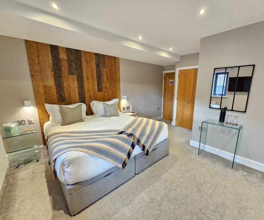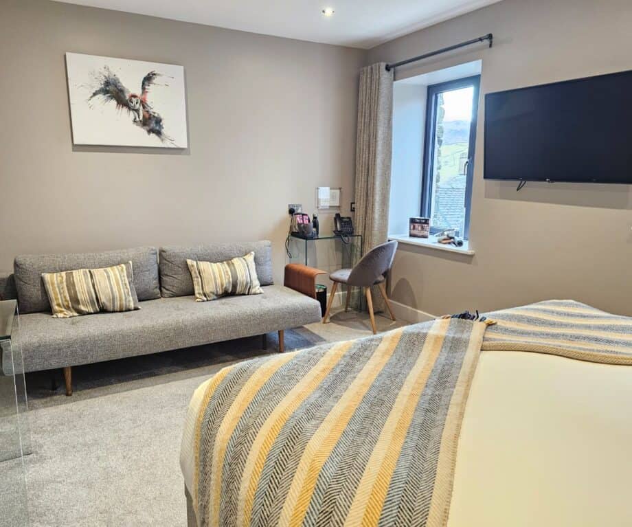 Each room at The Yan carries a name inspired by the local fells, from Dunmail to Fairfield, and the décor blends comfort with understated luxury — plush bedding, a deep and restful colour palette, and thoughtful touches that make it feel like a true retreat after a day’s exploring.