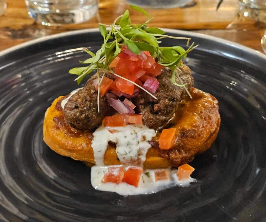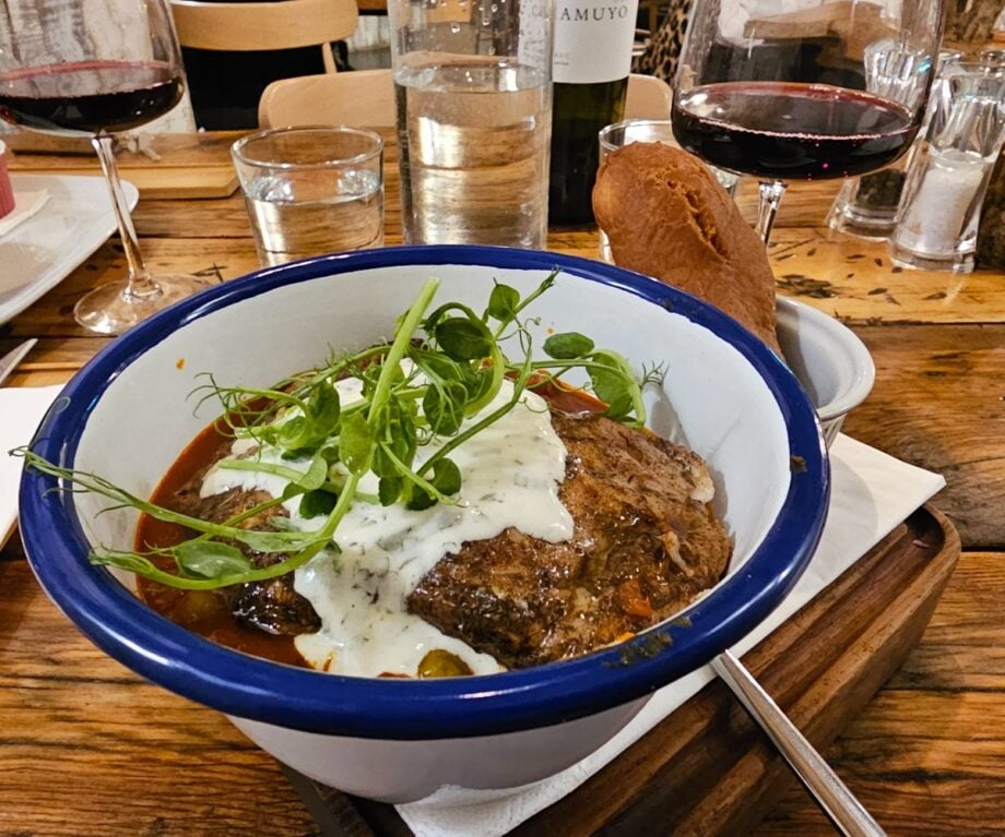The Brit-Yan (serves two) is also a treat: braised local beef feather steak with truffle and cheddar mash, served alongside creamy cauliflower cheese.