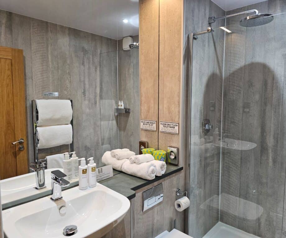 Pure Lakes toiletries, with their fresh, natural scents, are supplied. The geranium and ylang-ylang shampoo is a treat, while the grapefruit and lemongrass shower gel, hand wash, and hand and body lotion provide an uplifting zest ahead of a day on the fells.