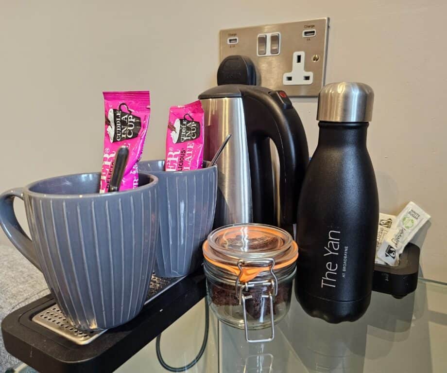 The Yan goes above and beyond with thoughtful little luxuries. In our room, a kettle and an ample supply of tea and coffee awaited us, alongside sticky toffee bites and a flask of fresh water.