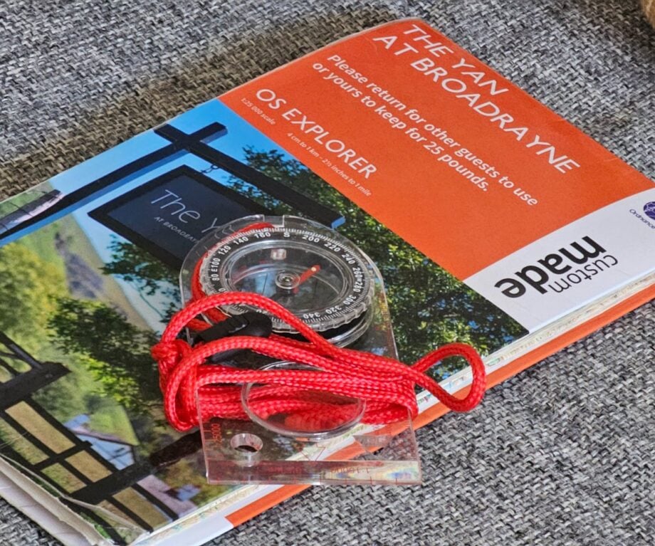 A custom-made Ordnance Survey map, with The Yan at its centre, came complete with a compass, perfect for intrepid days out.