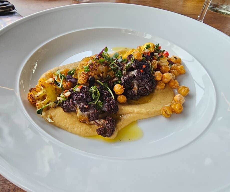 Vegetarians are also catered for with the cauliflower steak served with a chickpea purée, fried chickpeas and chimichurri.