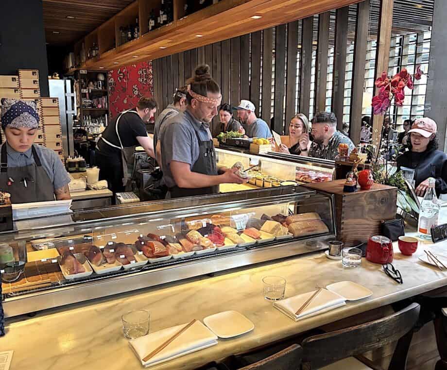 For vegetarians and those wanting something different, the Agemono menu is equally creative. The Kabocha, a Japanese pumpkin tempura, is likely to become a new favorite. The chefs are given license to add their innovative thoughts to any dish. The artistic view on sushi is more than satisfying in every respect. With private dining options ranging from 15 to 150, business groups will bond over sashimi.