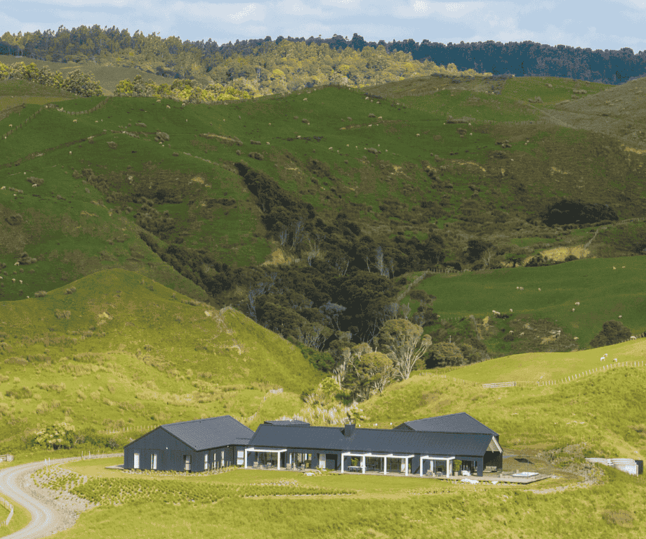 A few hours from Auckland’s bustle, Te Karaka Lodge arises from rolling Waikato farmland like a contemporary pastoral dream. This sophisticated retreat, nestled within the working Te Karaka Station, offers an authentic peek into New Zealand’s farming heritage wrapped in understated luxury.