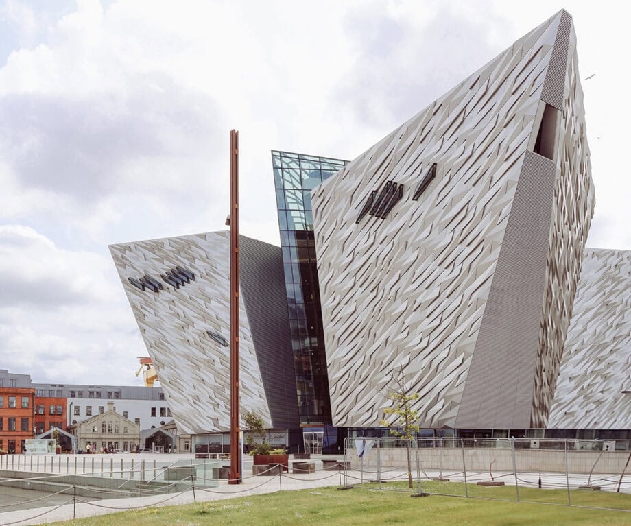The building’s exterior features four bold 38m pointed hulls—the same height as the Titanic’s—and inside, the visitor experience winds through a variety of spaces. With interactive displays, first-person accounts, and a Shipyard ride featuring passenger cars moving through the ‘bowels of the ship’, guests are kept well entertained. Moving through is also a surprisingly emotive experience, as sensitive respect is paid to those who lost their lives in the tragedy.