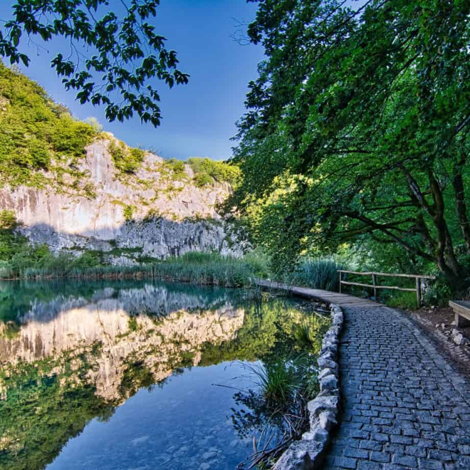Plitvice Lakes National Park, one of Croatia‘s most beautiful natural gems, offers visitors the opportunity to explore stunning lakes and waterfalls via beautiful trails and bridges. The total length of trails and bridges within this unique lake system is about 22 kilometres. The trails are made of a combination of stone and gravel, making them easy to walk on, while the bridges, made of chestnut timber, are perfect for connecting different parts of the Park. The width of the trails and bridges is 1.6 metres on average, allowing for easy movement and enjoyment of natural beauty.