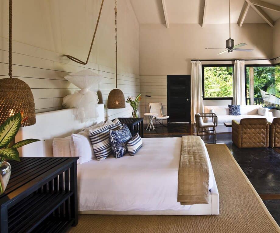 The Lodge’s 20 villas and cabanas are dotted alongside the meandering Privasson River. Each is decorated with Guatemalan prints and textiles with the dark polished wood typical of all the Coppola resorts. Each room allows guests complete privacy from which to enjoy the stunning views over the dense jungle, waterfalls, rivers and ravines.