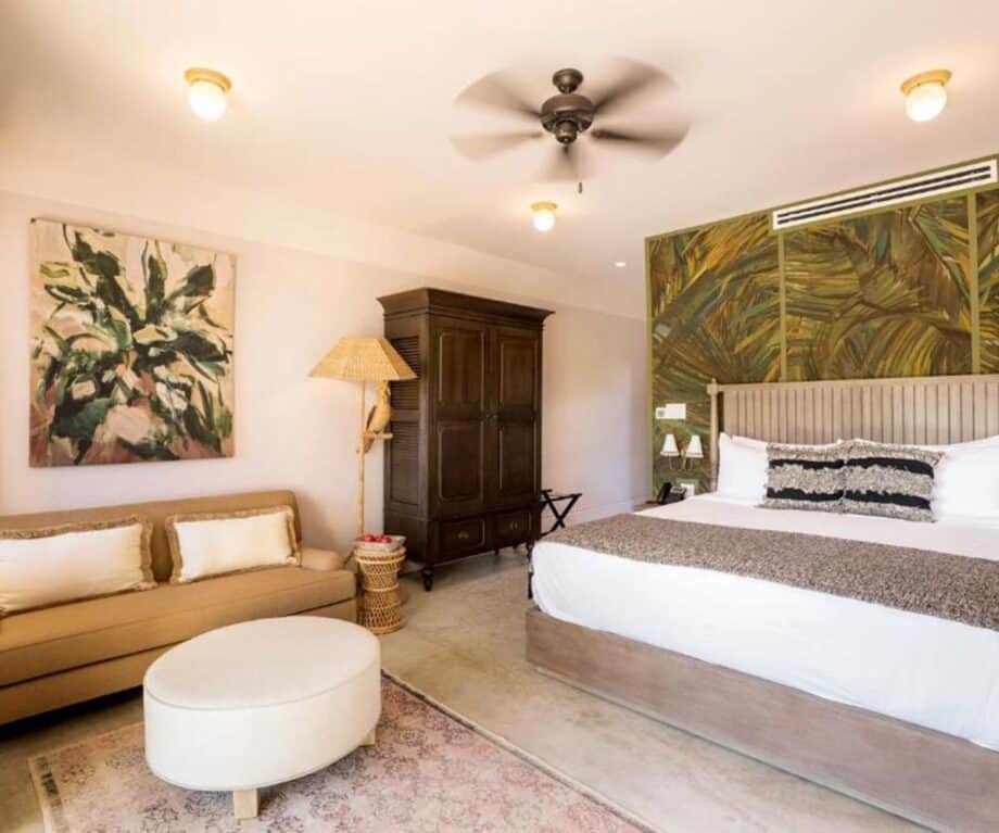 The accommodations at Itz’ana are bright and elegant with Caribbean inspired decorative touches. They range from rooms to suites and villas overlooking the beach complete with private plunge pools.