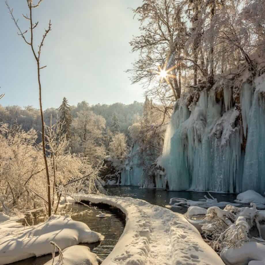 The winter scenery at Plitvice Lakes is a special treat for photographers. The snow-covered landscape and frozen waterfalls create unique scenes, ideal for those who want to capture spectacular nature photographs. Frozen waterfalls, like the Great Waterfall, become favorite subjects for photographers. Winter is a time when nature shows both its harshness and incredible beauty in the contrast between white snow and emerald lakes. For photographers seeking interesting details, winter sights such as ice crystals on tree branches or frozen waterfalls offer endless possibilities for creative shots. The light is soft, and the scenes are often wrapped in morning frost or fog, allowing for dramatic and attractive photographs. Reflections in frozen lakes and the layers of snow emphasize the interplay of light and shadow, making each shot special. Additionally, since there are significantly fewer visitors in winter, photographers have the chance to capture the landscape in its most peaceful and intimate form. Whether you’re using a professional camera or just a smartphone, Plitvice Lakes in winter will surely not disappoint you.